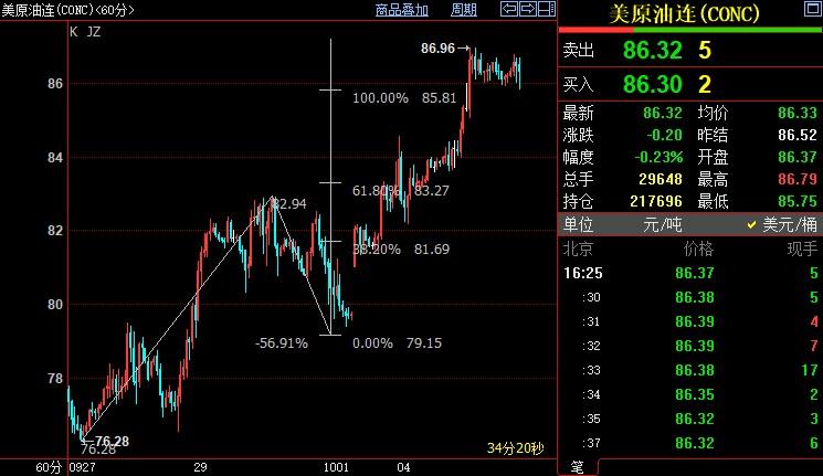 NYMEX原油上看87.38美元