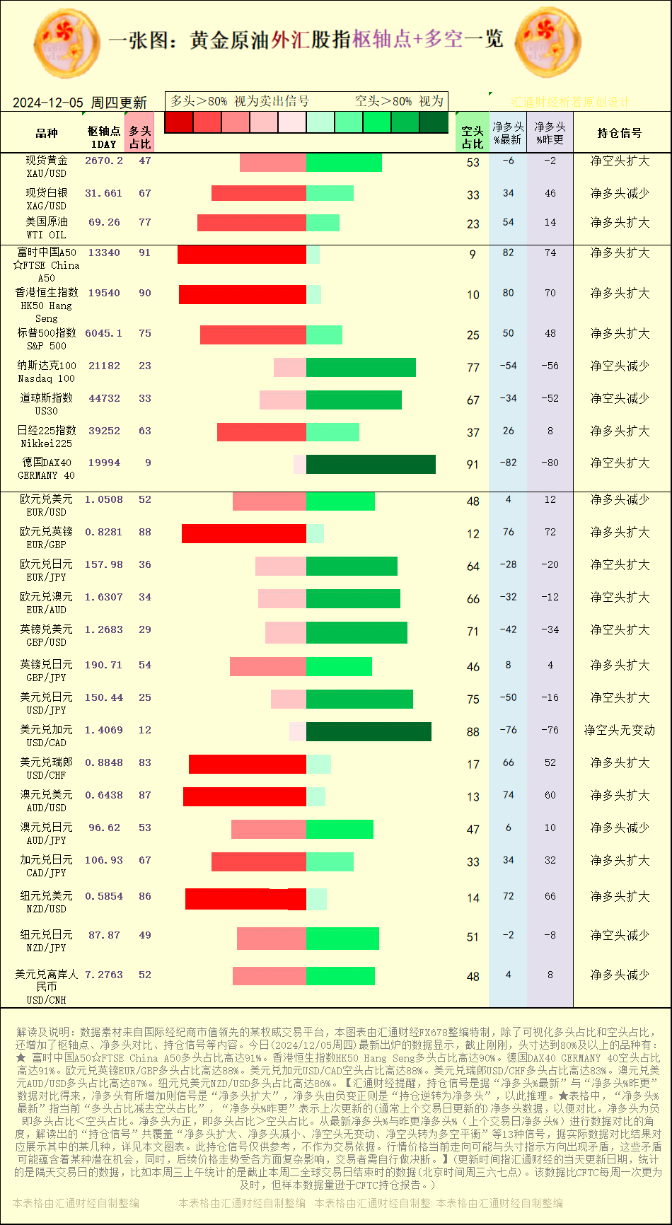 一张图:2024/12/5黄金原油外汇股指“枢纽点+多空持仓信号”一览