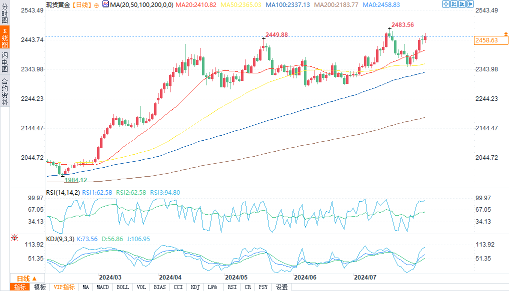 现货黄金报2459.39美元/盎司,涨幅0.54%。
