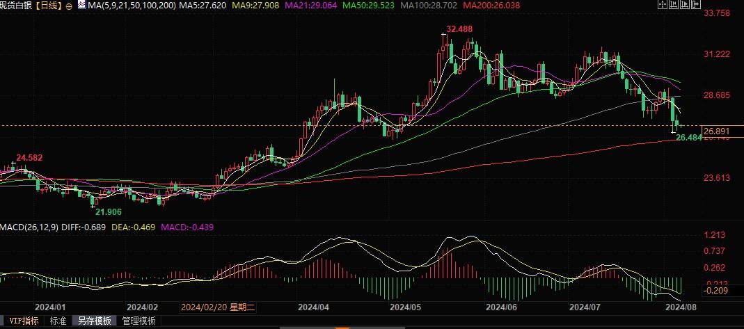 汇通财经APP讯——由于投资者担心白银作为一种金属的需求能否增长,白银价格走软。周二,白银价格跌破关键支撑位27.00美元,收跌1.01%,报26.95美元。进入周三后,银价微跌。