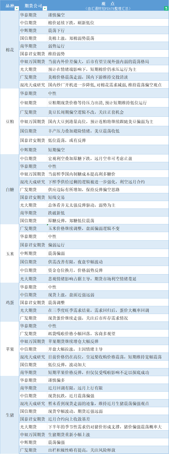 标题:期货公司观点汇总一张图:8月8日农产品(棉花、豆粕、白糖、玉米、鸡蛋、生猪等)