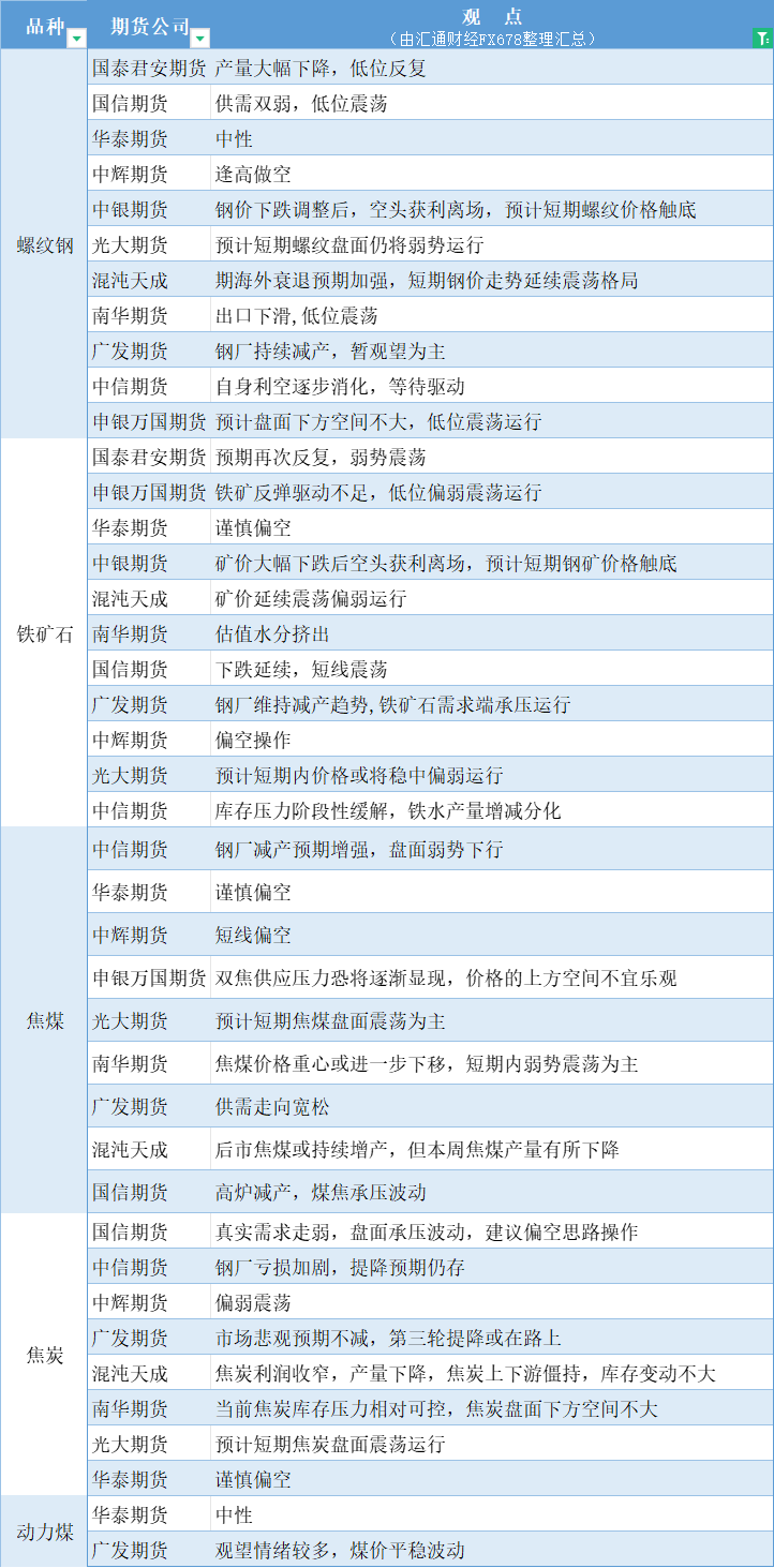 标题:期货公司观点汇总一张图:8月8日黑色系(螺纹钢、焦煤、焦炭、铁矿石、动力煤等)