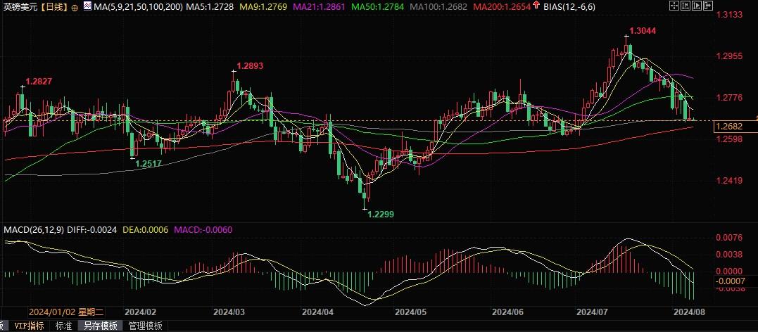 汇价可能在100日和200日均线汇合的1.26附近找到支撑(目前分别为1.2684和1.2654)。”