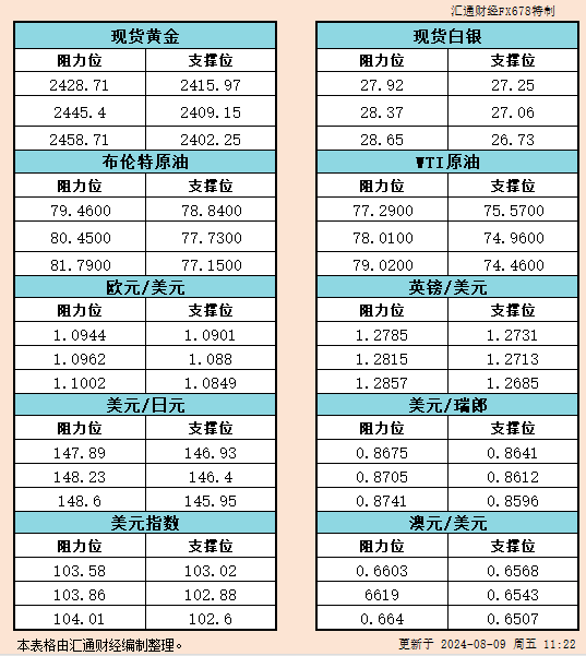 标题:8月9日亚市支撑阻力:金银原油+美元指数等六大货币对