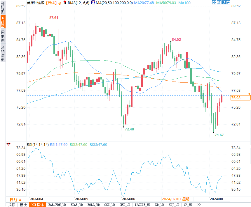 本周,美国经济数据的积极表现对市场情绪产生了显著影响。美国失业救济申请数据的降幅超出预期,表明劳动力市场并未出现崩溃,而是继续呈现逐步疲软的态势。此外,中国国家统计局公布的7月居民消费价格指数(CPI)同比、环比均上涨0.5%,超出预期,为油市提供了额外的支撑。