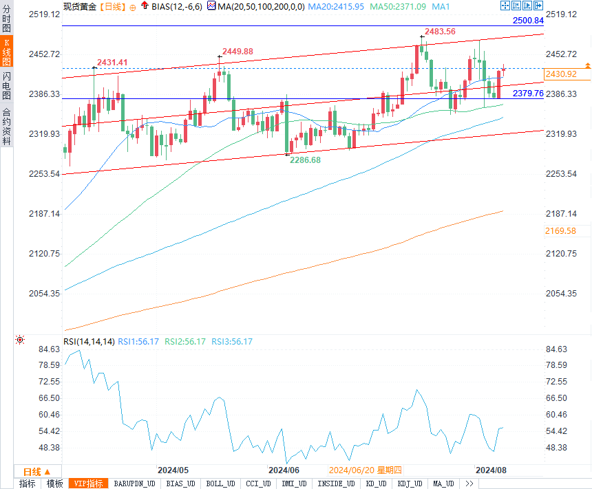 现货黄金最终收报2430.62美元/盎司,本周累计下跌0.41%,整体交投区间为2458.80-2364.43美元/盎司。