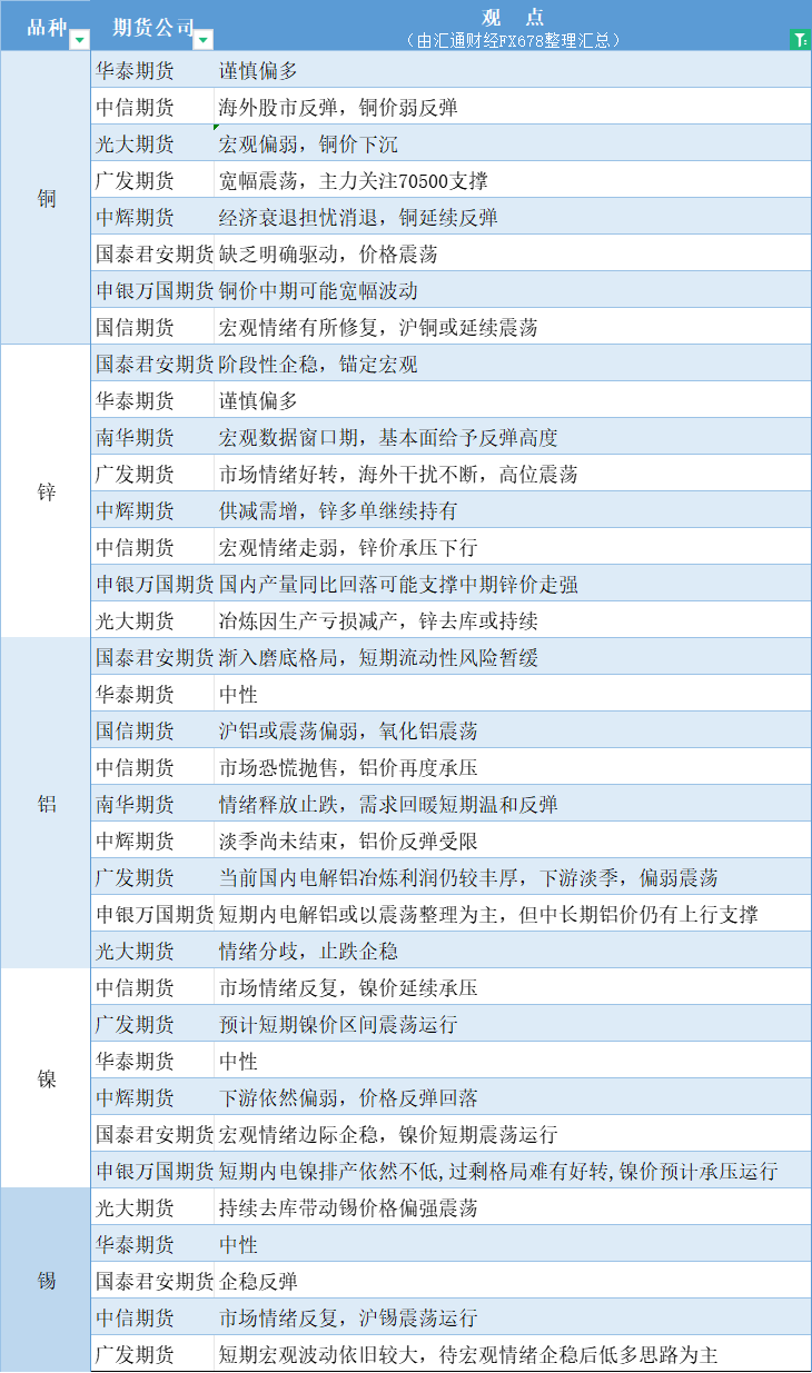 标题:期货公司观点汇总一张图:8月12日有色系(铜、锌、铝、镍、锡等)