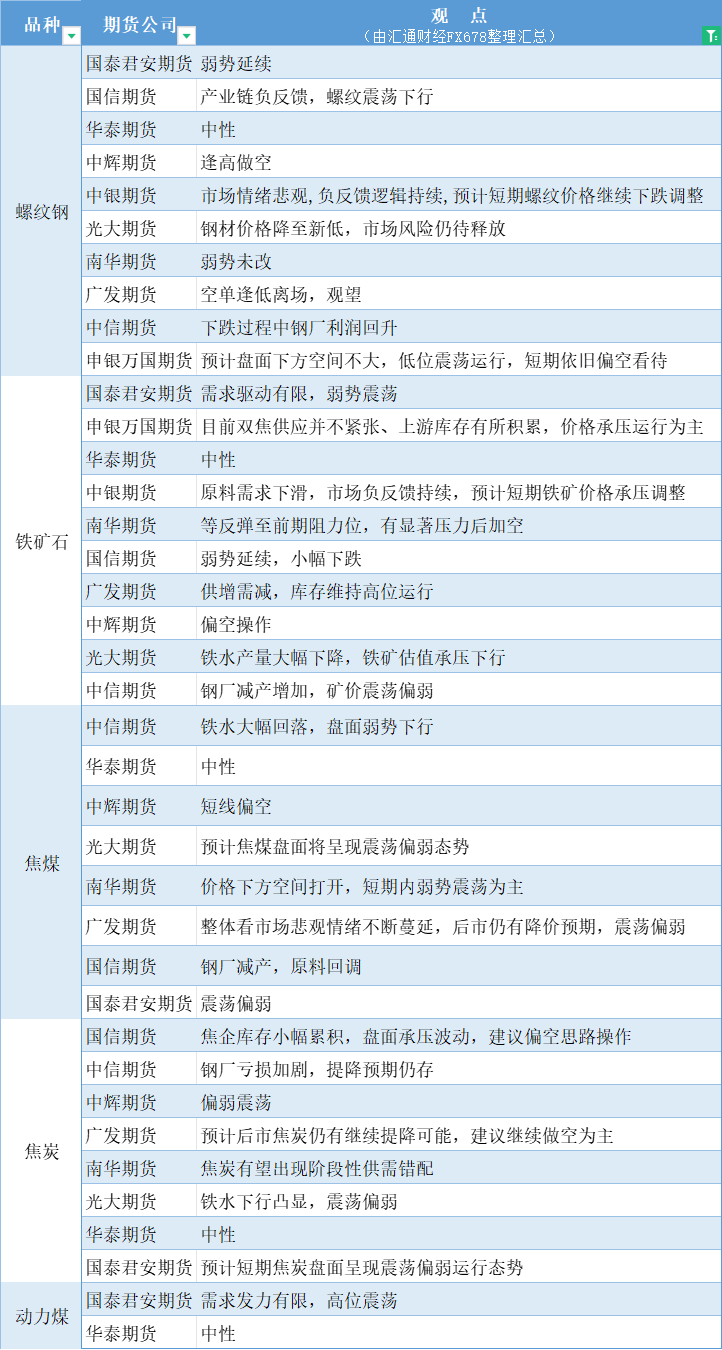 标题:期货公司观点汇总一张图:8月12日黑色系(螺纹钢、焦煤、焦炭、铁矿石、动力煤等)