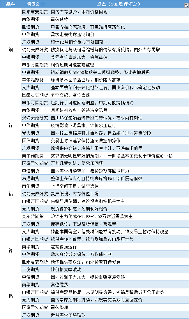 标题:期货公司观点汇总一张图:11月28日有色系(铜、锌、铝、镍、锡等)