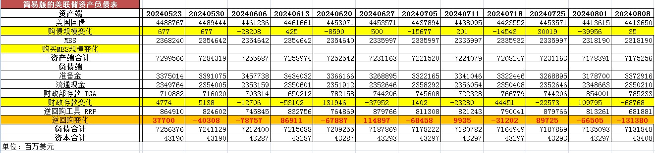 汇通财经APP讯——2024年8月8日,美联储照例公布了当周的资产负债表。