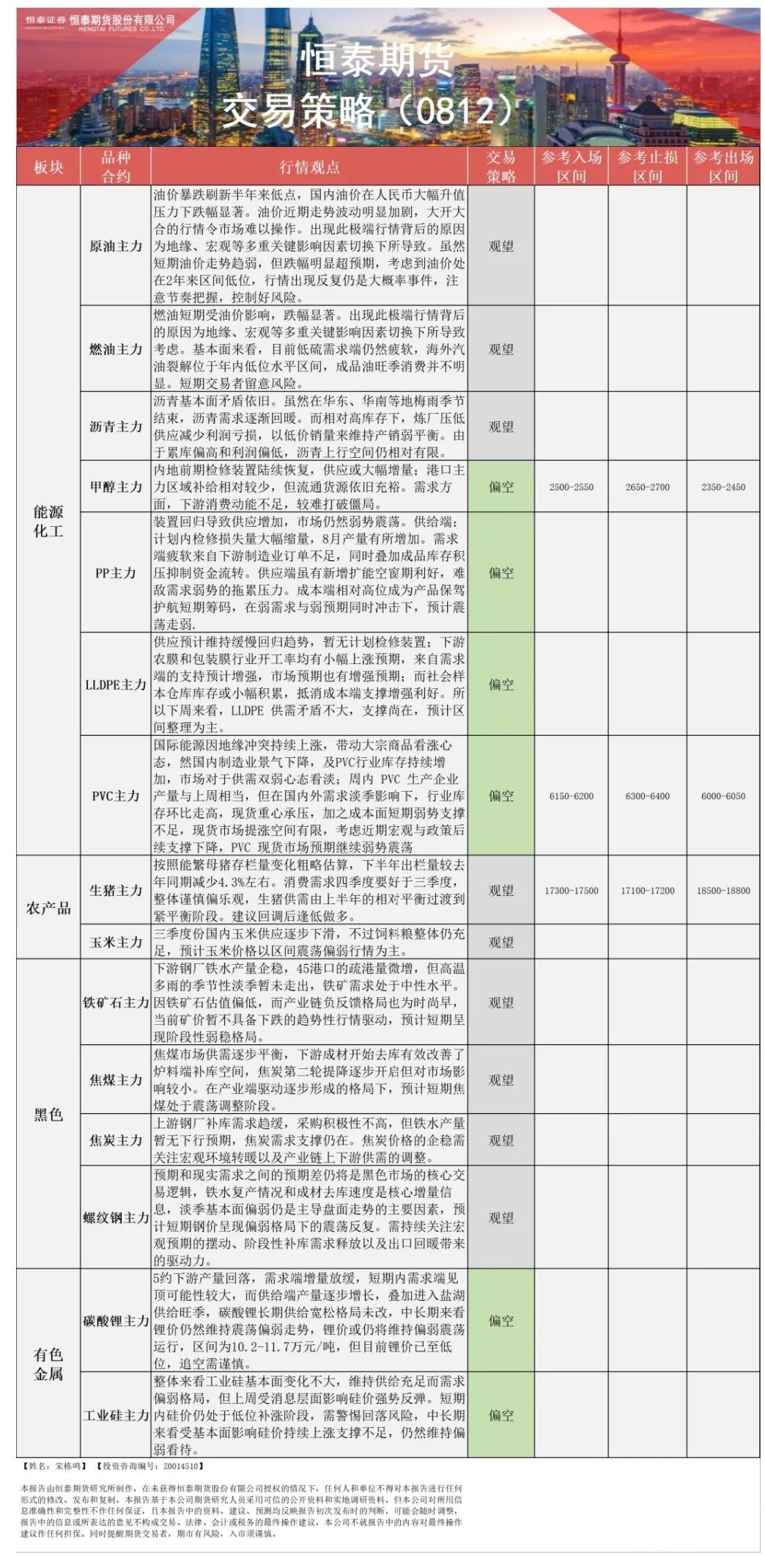标题:【恒泰早报】8月12日恒泰期货交易策略