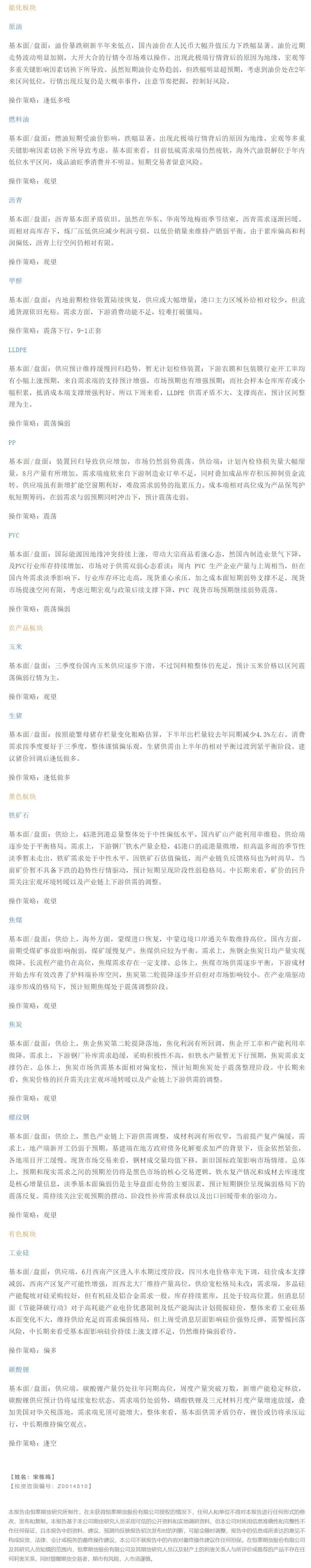 汇通财经APP讯——以下是恒泰期货今日早间交易策略,覆盖品种有:宏观分析、原油燃料油等能源化工、玉米生猪等农产品、黑色系如铁矿石焦煤焦炭螺纹钢、有色系如工业硅碳酸锂等。