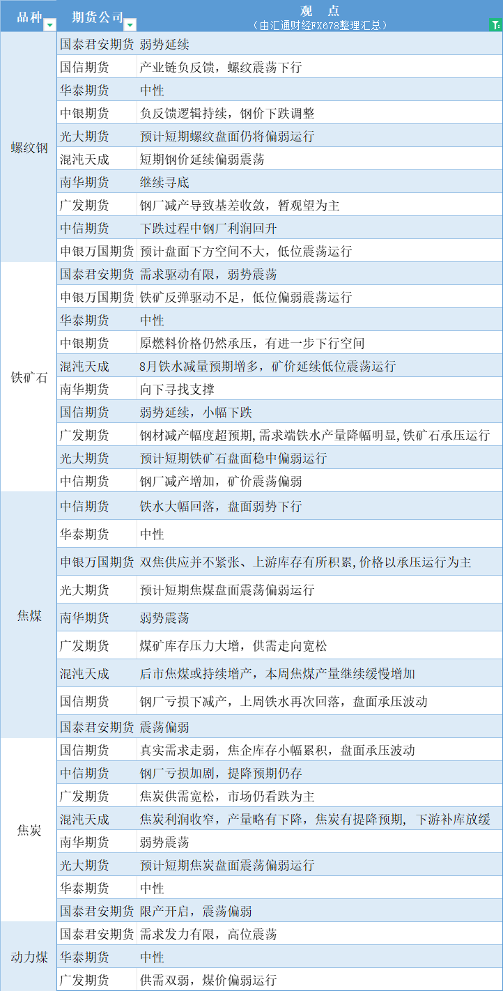 标题:期货公司观点汇总一张图:8月13日黑色系(螺纹钢、焦煤、焦炭、铁矿石、动力煤等)