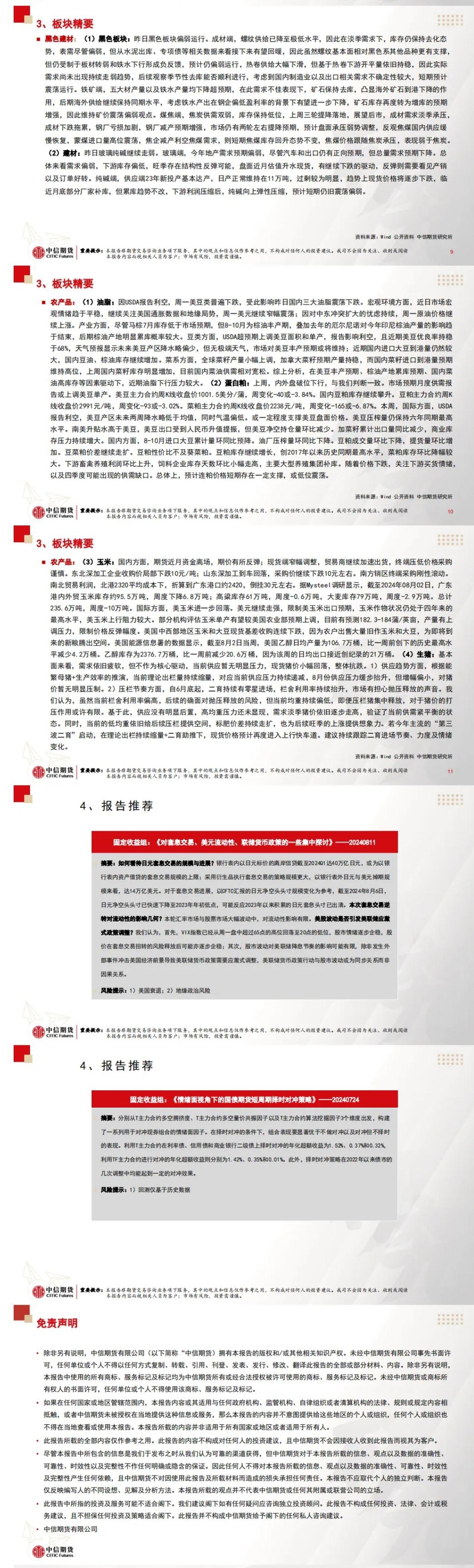 以下为中信期货今日晨报对股指、国债、贵金属、原油能源化工、有色金属、螺纹钢材焦炭黑色系玻璃纯碱等建材、玉米生猪油脂蛋白粕等农产品等期货的操作建议和提醒。