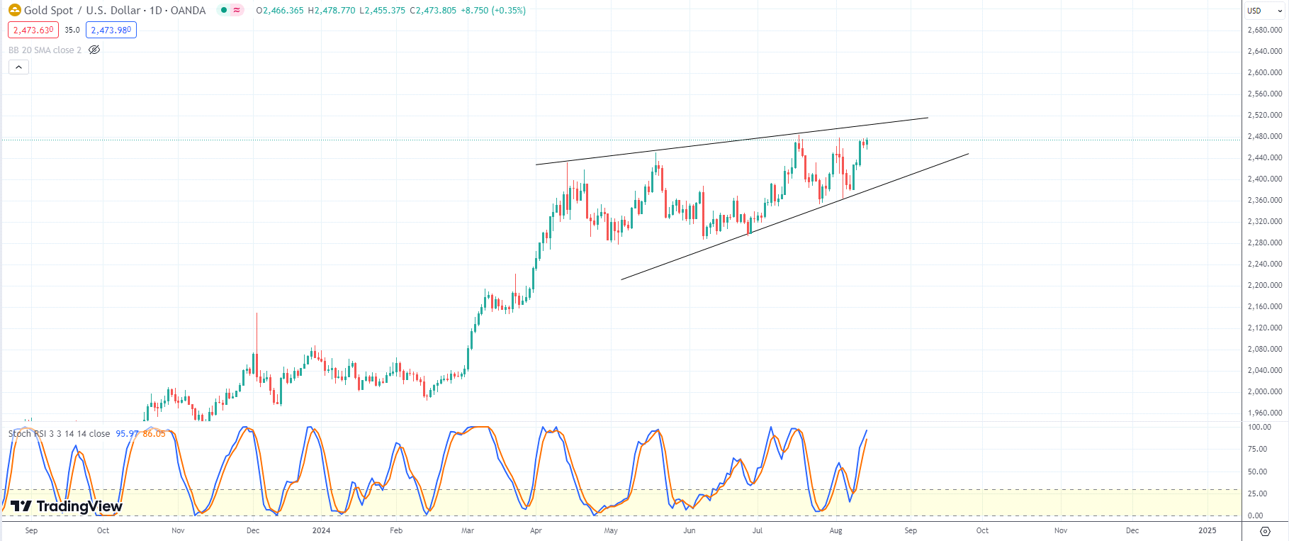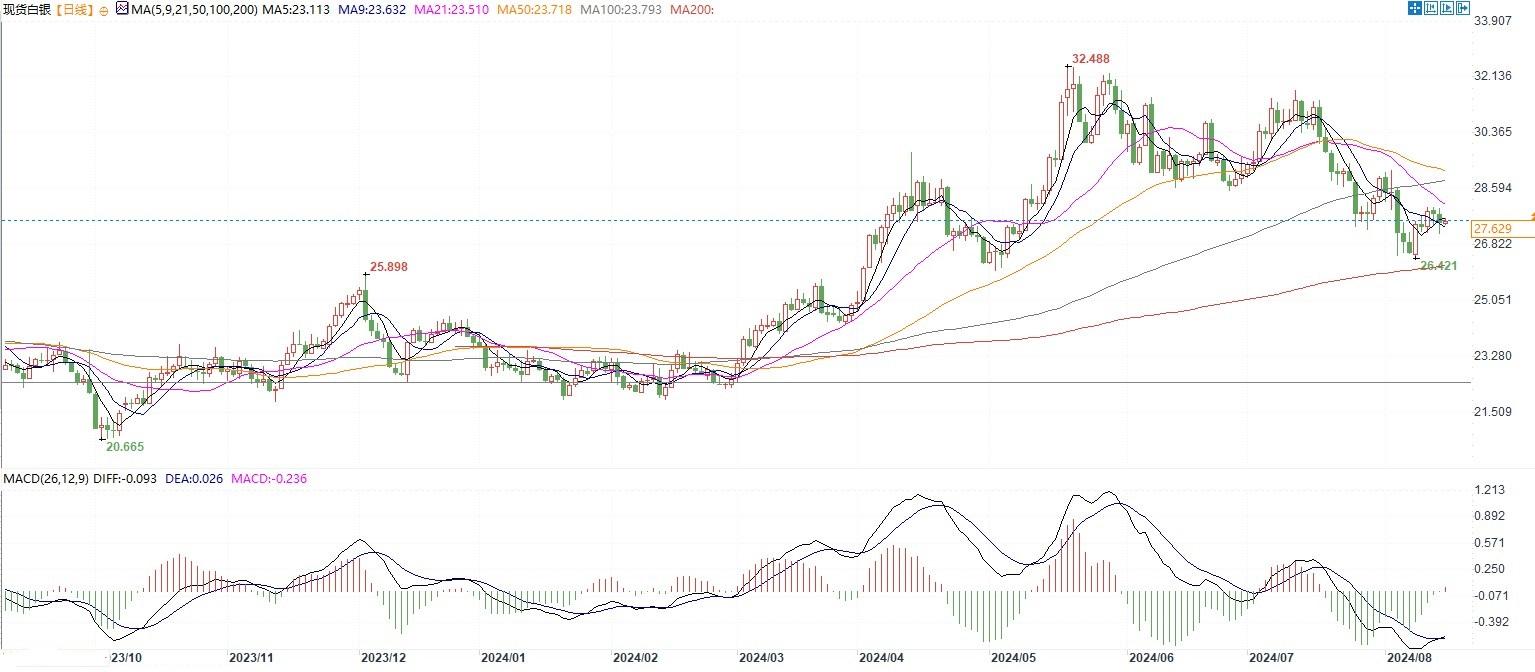 标题:白银下跌但有支撑,黄金若突破上升楔形将强势上涨!