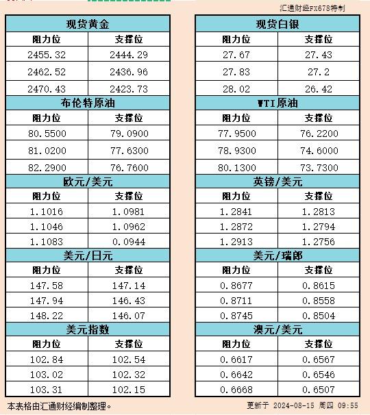 8月15日亚市支撑阻力:金银原油+美元指数等六大货币对
