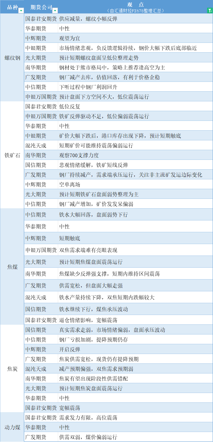 标题:期货公司观点汇总一张图:8月16日黑色系(螺纹钢、焦煤、焦炭、铁矿石、动力煤等)