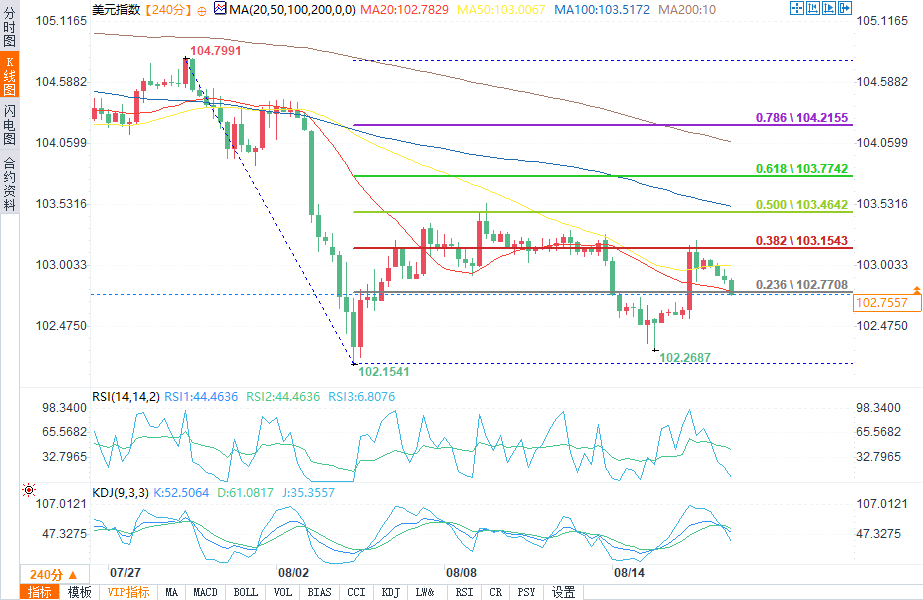 美元指数4小时图 来源:易汇通)