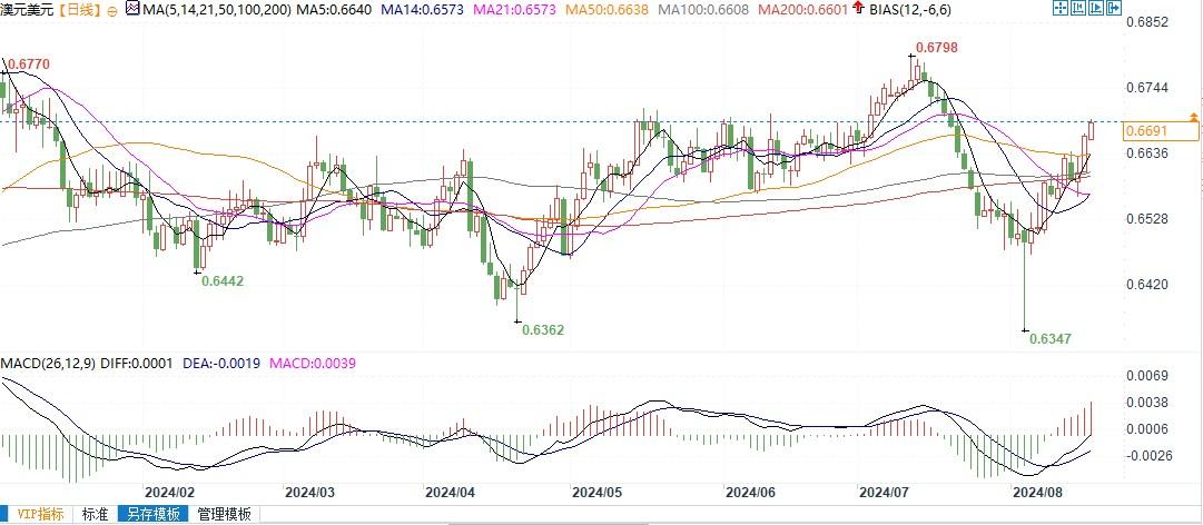 标题:澳元兑美元技术面看涨,若突破0.6740将进一步升向0.6798!