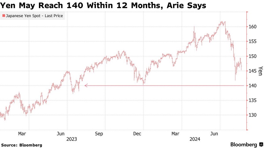 Arie表示,美国可能开始降息,这为建立日元多头头寸提供了一个机会。他表示,日本央行今年可能会再加息一次。