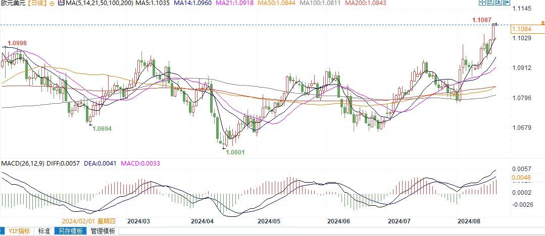 标题:欧元技术面看涨,上行目标位1.11-1.1140