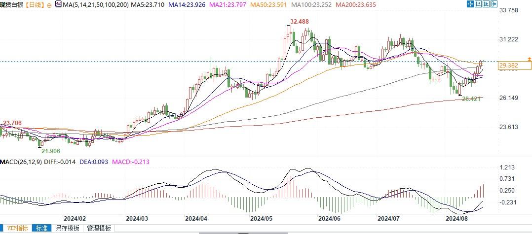北京时间8月20日9:10,现货白银报29.38美元/盎司