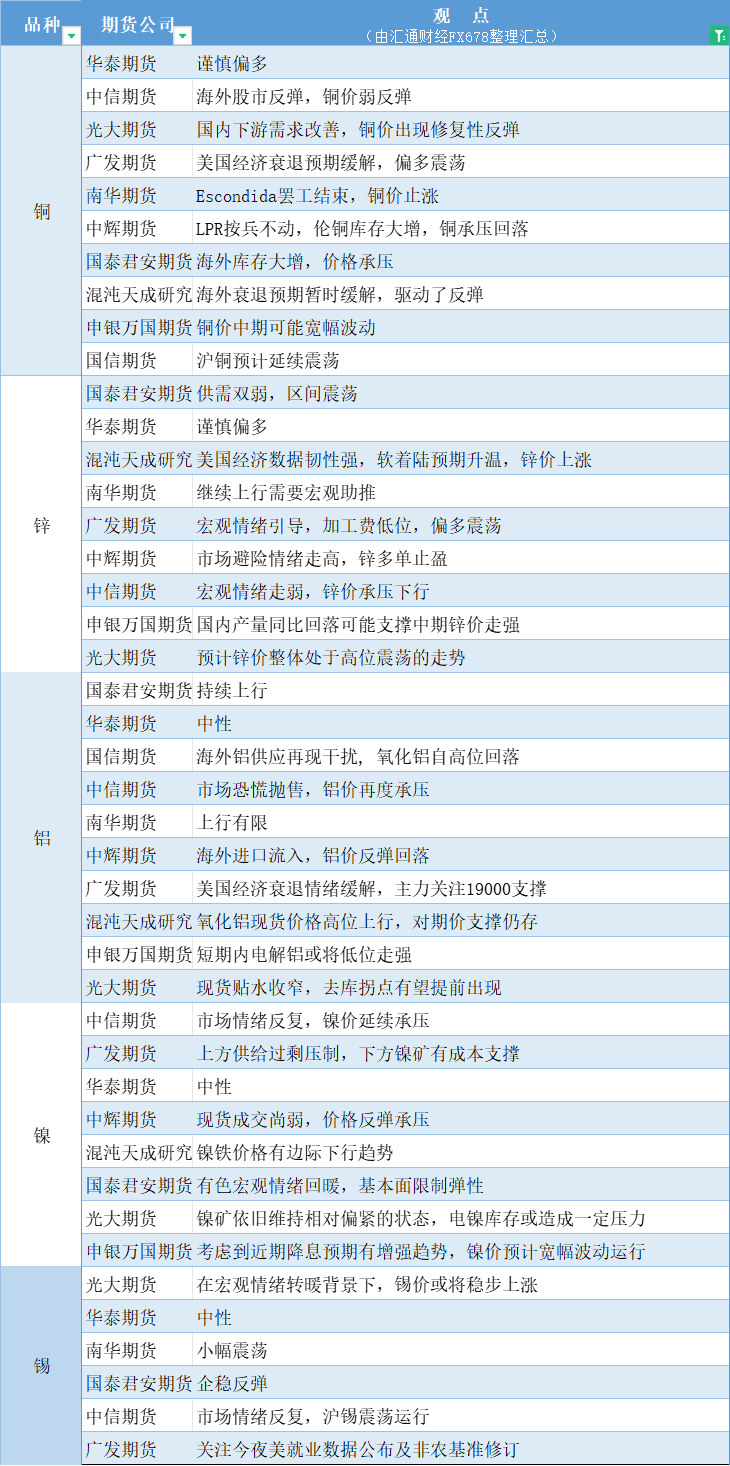 期货公司观点汇总一张图:8月21日有色系(铜、锌、铝、镍、锡等)