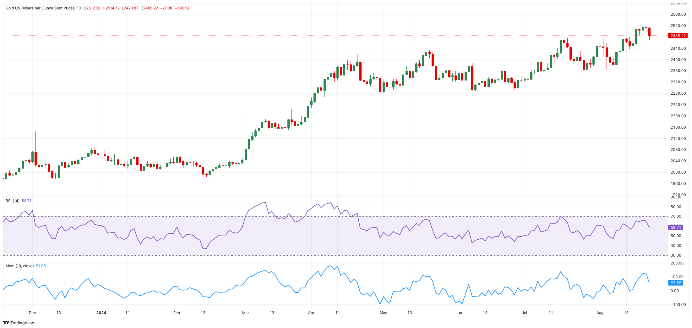 汇通财经APP讯——周五(8月23日)亚市盘中,现货黄金小幅反弹,目前交投于2492.06美元/盎司附近,涨幅约0.3%。FXStreet高级分析师Pablo Piovano撰文,对黄金技术前景进行分析。