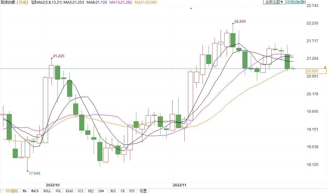 现货白银报21.19美元/盎司