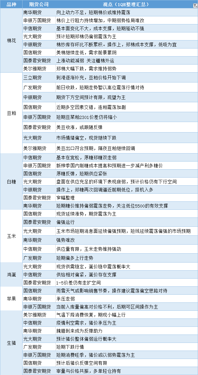 标题:期货公司观点汇总一张图:11月29日农产品(棉花、豆粕、白糖、玉米、鸡蛋、生猪等)