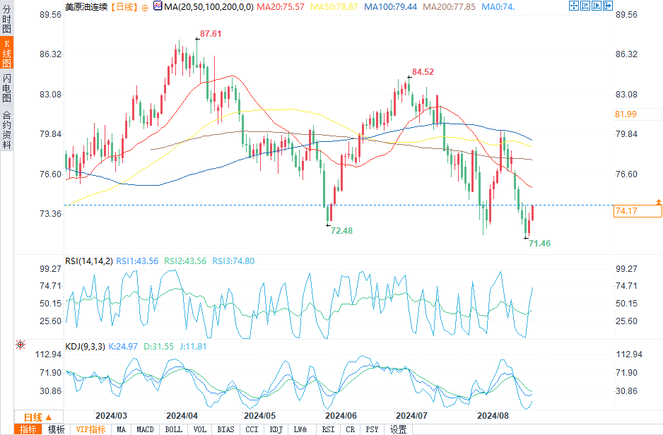 预计今日交易区间在72.00美元支撑位和75.00美元阻力位之间。
