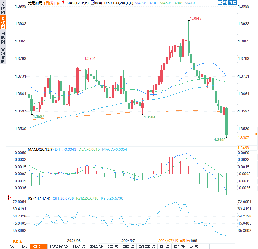本周,加元走势受到加拿大零售销售数据和美联储降息预期的双重影响。美元/加元跌破1.3600关口,加元收获年度最大涨幅。截至发稿,美元/加元报1.35057,跌幅0.81%。