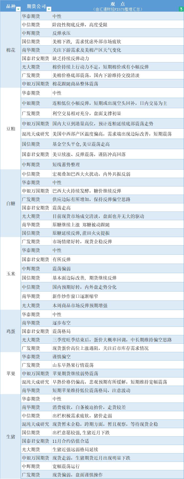标题:期货公司观点汇总一张图:8月28日农产品(棉花、豆粕、白糖、玉米、鸡蛋、生猪等)