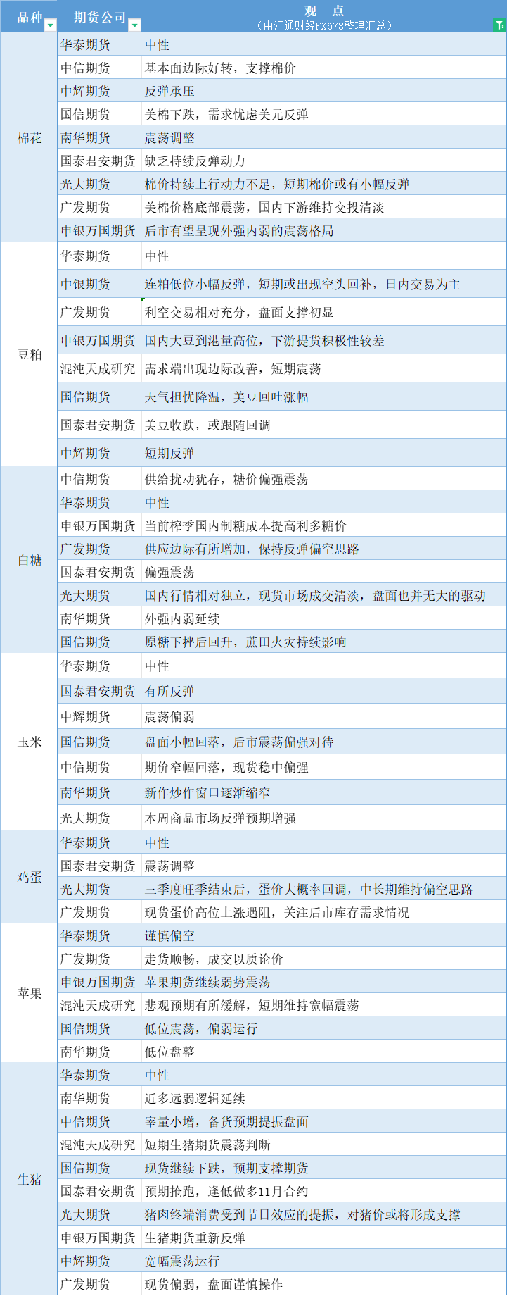 标题:期货公司观点汇总一张图:8月29日农产品(棉花、豆粕、白糖、玉米、鸡蛋、生猪等)