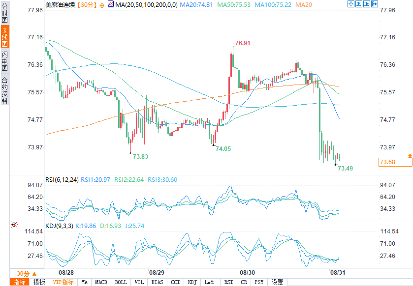 (WTI原油30分钟图 来源:易汇通)