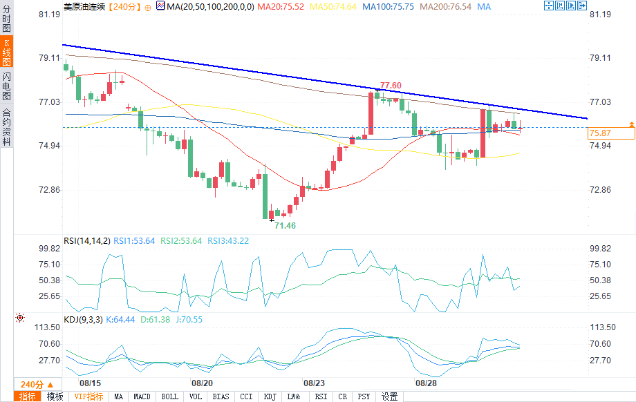 技术分析:周五预期交易区间75.40美元-78.50美元