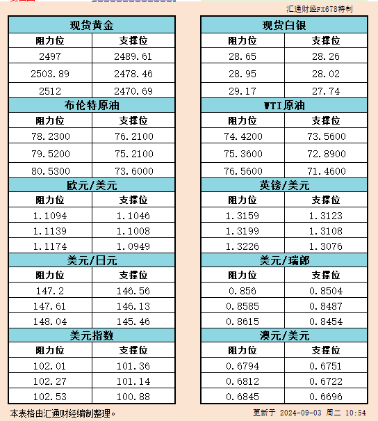 标题:9月3日亚市支撑阻力:金银原油+美元指数等六大货币对