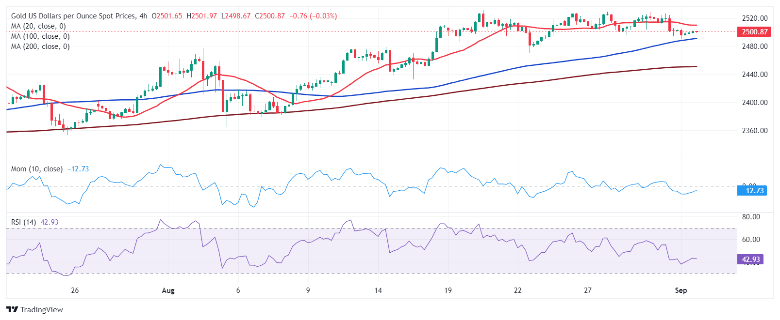 汇通财经APP讯——周二(9月3日)亚市盘中,现货黄金短线突然快速下滑,一度跌破2490美元/盎司关口,刷新两周低点至2489.63美元/盎司。FXStreet首席分析师Valeria Bednarik撰文,对黄金技术前景进行分析。