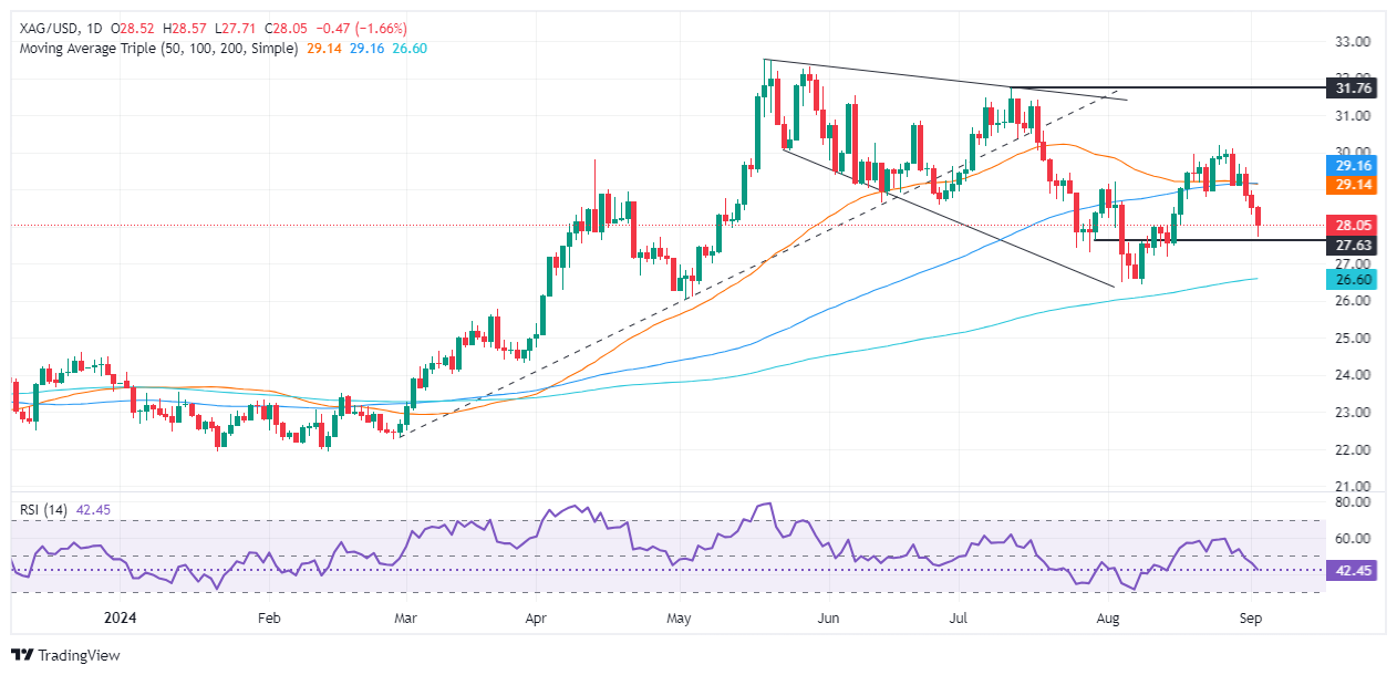 汇通财经APP讯——周三(9月4日)亚市盘中,现货白银在昨日大跌后延续跌势,目前银价已经跌破重要关口28.00美元/盎司。FXStreet分析师Christian Borjon Valencia撰文,对银价技术走势进行分析。