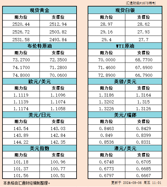标题:9月6日亚市支撑阻力:金银原油+美元指数等六大货币对