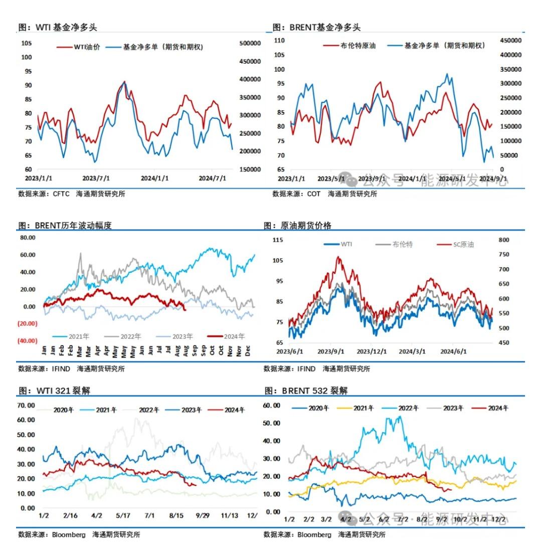 油价的表现是让不少投资者感到失望的,尤其是对比过去二年油价在9月份都有过强势表现,但今年9月已经很难再现去年的旺季超预期表现。而宏观层面中美近期经济数据带来的担忧,以及接下来将迎来美联储的首次降息,投资者也越来越关注宏观层面对市场的影响。整体来看机构在减少对油价做多押注同时,增加了空头持仓,大宗商品尤其是工业品的增仓下行也进一步强化了资金看空后市的预期。虽然油价距离最近2年震荡区间的最低点还差一点,但击穿欧佩克+减产底已经成为高确定性的事件。油价重心下移重新寻找平衡点是未来一段时间需要做的工作,注意节奏把握,控制好风险。
