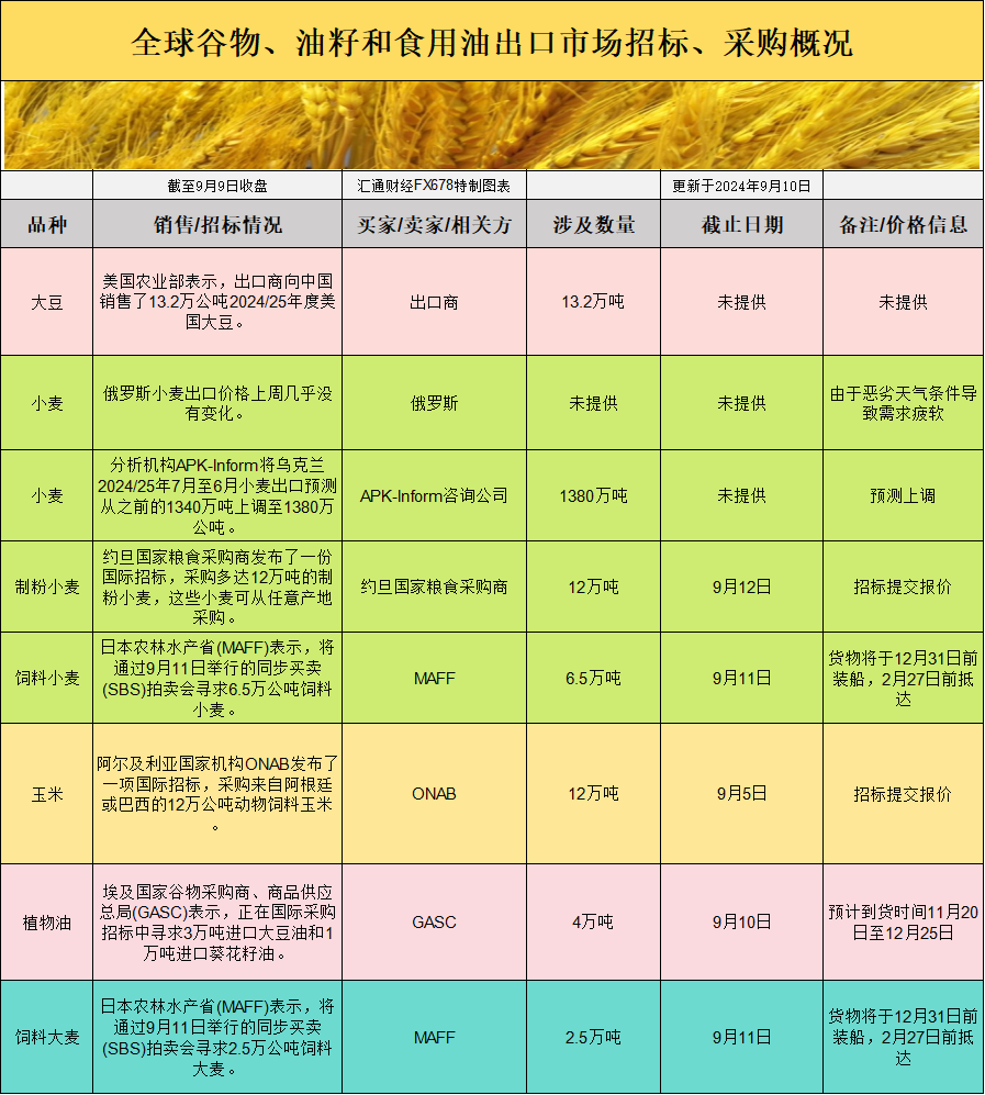 国际招标及消息面影响:小麦市场的国际招标活动频繁,约旦采购12万吨小麦,阿尔及利亚寻求采购大量小麦。日本农林水产省通过SBS拍卖会采购6.5万吨饲料小麦,显示全球小麦需求依旧强劲。然而,供应端的不确定性,尤其是俄罗斯产量的下降,可能进一步推高全球小麦价格。