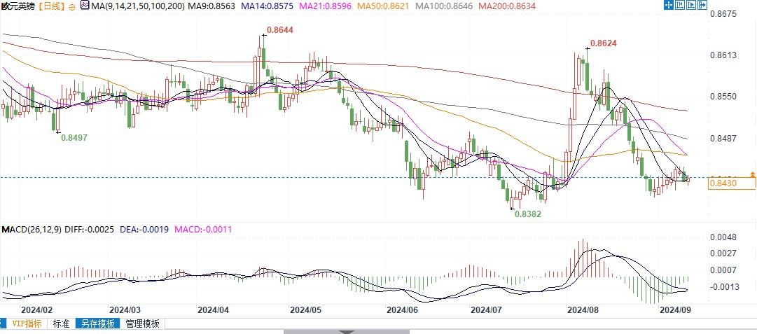 北京时间9月11日11:43,欧元兑英镑报0.8429/30