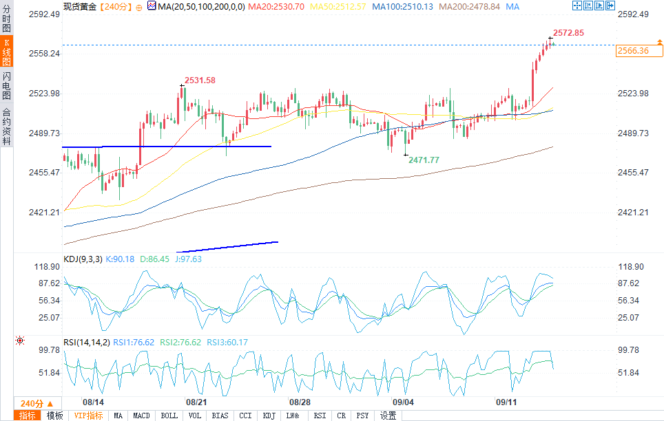 现货黄金报2566.93美元/盎司,涨幅0.33%。