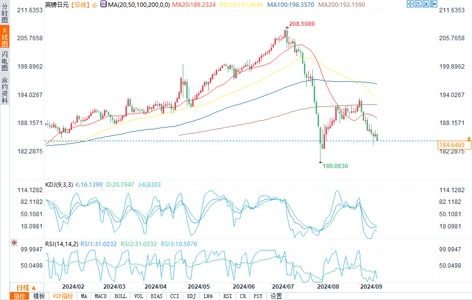 总体而言,英镑/日元没有摆脱下行风险,不过如果价格能再次收于185.00-185.65上方,可能会推迟进一步的抛售。