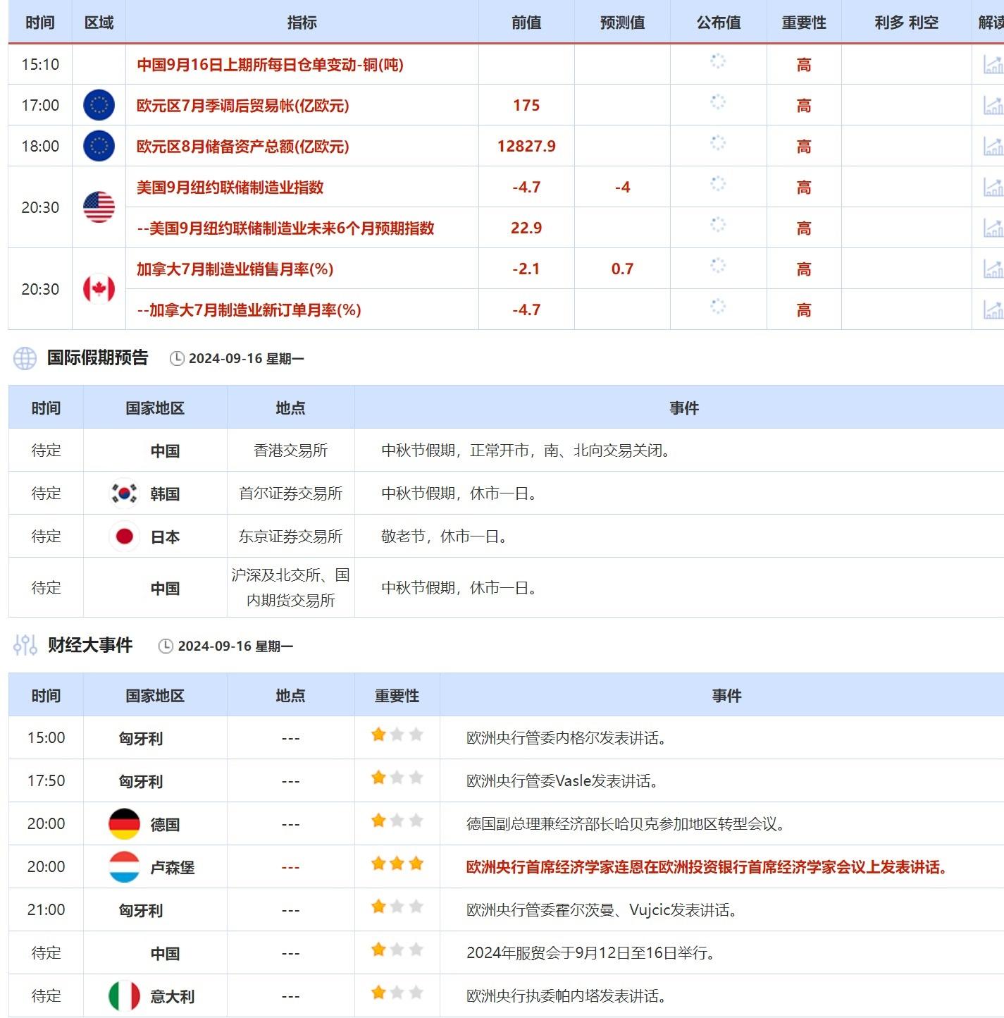 今日重点数据和大事件