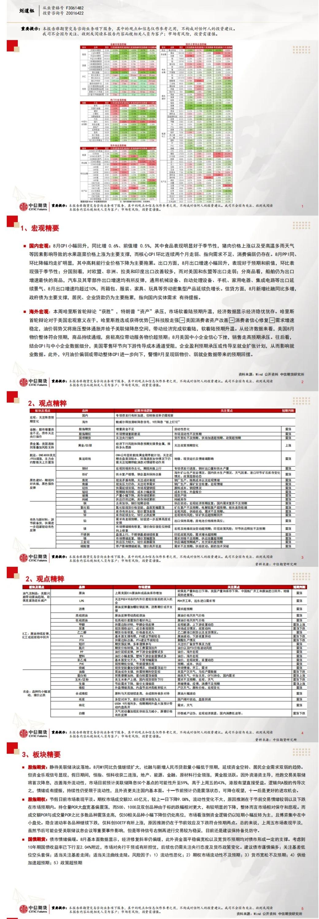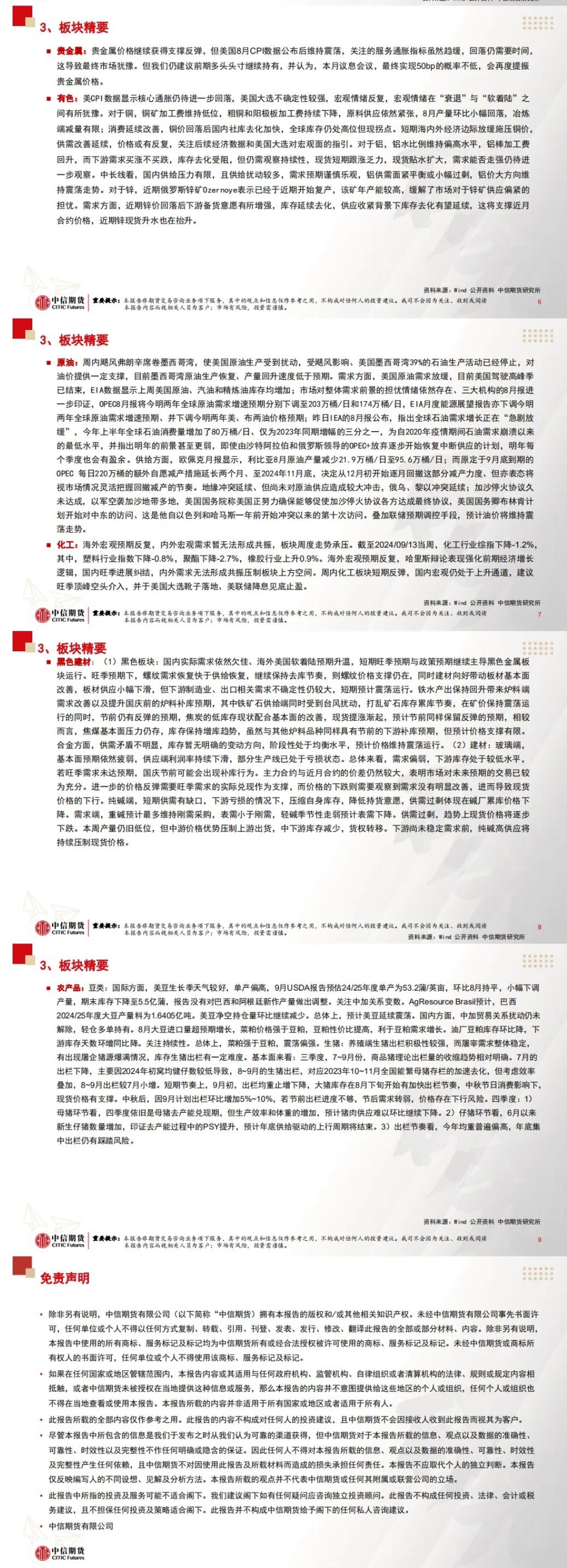 标题:中信期货9月18日晨报:国内经济数据偏弱,节日期间有色贵金属原油反弹明显