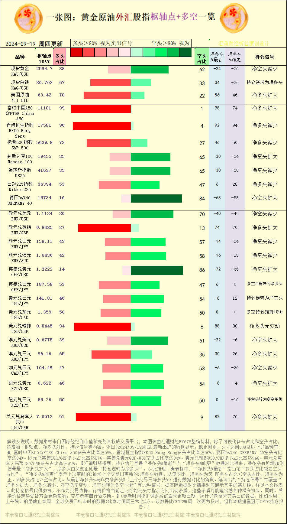 标题:一张图:2024/9/19黄金原油外汇股指“枢纽点+多空持仓信号”一览