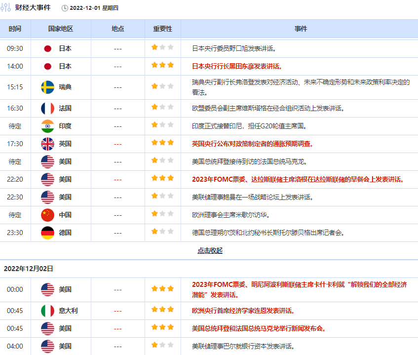 周四重要经济数据和事件