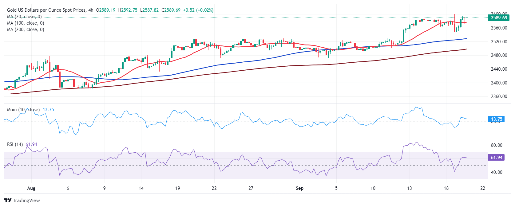 汇通财经APP讯——周五(9月20日)亚市盘中,现货黄金震荡走高,目前交投于2591.78美元/盎司,略低于本周创下的历史新高。FXStreet首席分析师Valeria Bednarik撰文,对黄金技术前景进行分析。